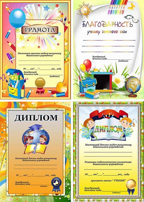 Грамота, благодарность, диплом для выпускного в детском саду 4 PSD | Разрешение 2480 Х 3500 | 300 dpi | Размер 52,5 мб. Слои отключены