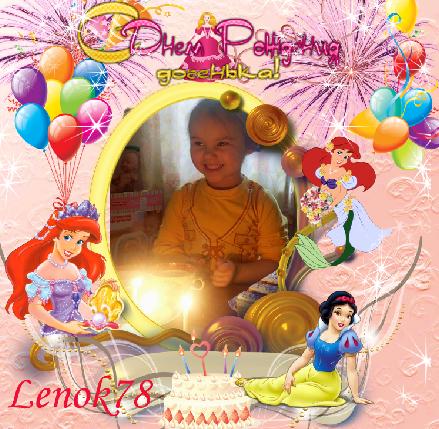 Детская рамка для фото - С днём рождения, доченька! Формат: PSD/ Разрешение:3000x3000, 300 dpi /Размер:55,72 Mb Автор:Lenok78