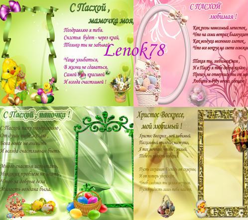 Рамки - поздравления для родных - С пасхой для мамы, папы, любомого и любиой Формат:4PSD|Разрешение:4800x3600,2950x2094| 300,350dpi| Размер:75,89 Mb Автор: Lenok78