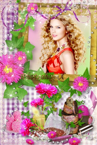 Цветочная фоторамка с астрами для Photoshop – Розовые грезы